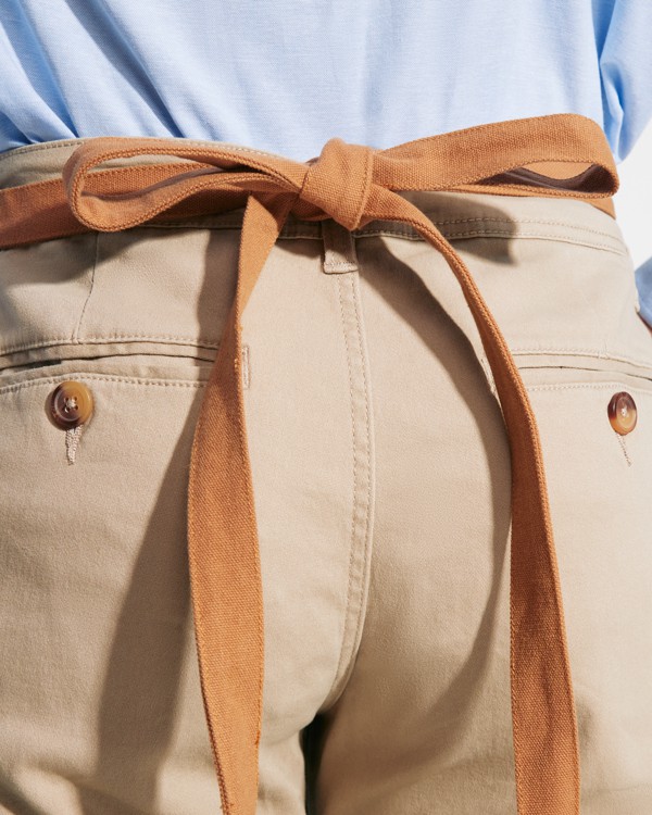 Está confeccionado en mezclilla gruesa con costuras reforzadas. Mantiene la forma tras muchos lavados y conserva bien el color. La tela respira y seca rápido, ideal para ritmos intensos. No se arruga fácil y protege de manchas habituales. Lávalo en lavadora y úsalo de nuevo sin complicaciones. Es un mandil de jean pensado para durar. Recomendamos lavar con agua fría y detergente suave. Evita lejía para mantener el tono original. Menos reemplazos significa menos gasto y menos residuos.
