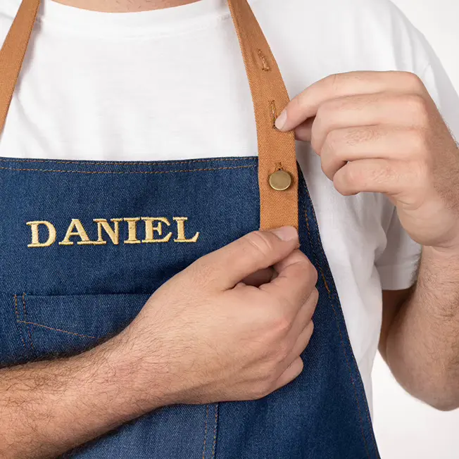 Con un Delantal podrás preparar tus recetas favoritas sin preocuparte por manchas. Su tela de mezclilla garantiza resistencia y un look moderno a la vez.