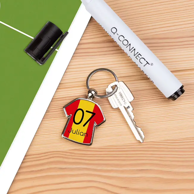 Este llavero metálico camiseta es un regalo útil, moderno y atractivo. Es un producto perfecto para amigos, familiares o clientes que valoran detalles originales. Funciona muy bien como recuerdo de eventos deportivos, ferias o celebraciones. Además, su aspecto metálico aporta elegancia, convirtiéndolo en un accesorio especial que cualquiera apreciará.