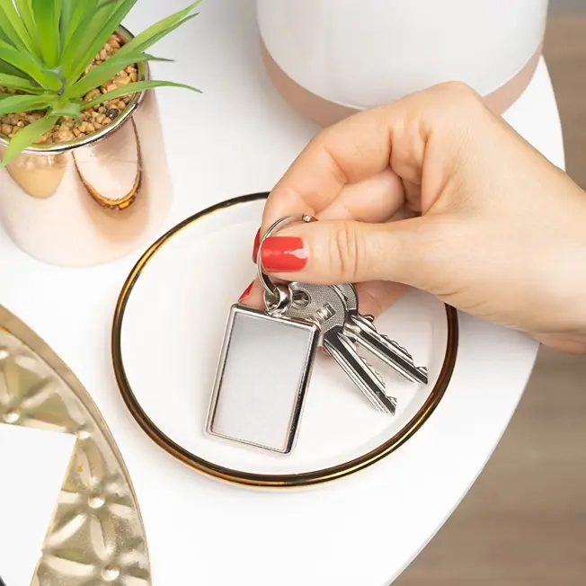 La resistencia del llavero metálico rectangular lo hace destacar frente a otras opciones como llaveros de plástico o cuero. Está fabricado con materiales de calidad que garantizan larga vida útil. Soporta el uso diario, los golpes y el paso del tiempo sin perder su atractivo. Este llavero metálico, también llamado accesorio de llaves o colgador, se convierte en un compañero confiable para mantener tus llaves siempre seguras.